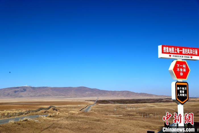 11月11日,記者驅車來到青海省海北藏族自治州海晏縣金沙灣,連綿沙丘與(yu) 蔚藍湖水相接景色優(you) 美。金沙灣北距海北藏族自治州首府西海鎮約25公裏、西距青海湖約2公裏,以觀看金色的沙漠風光為(wei) 主要特色。