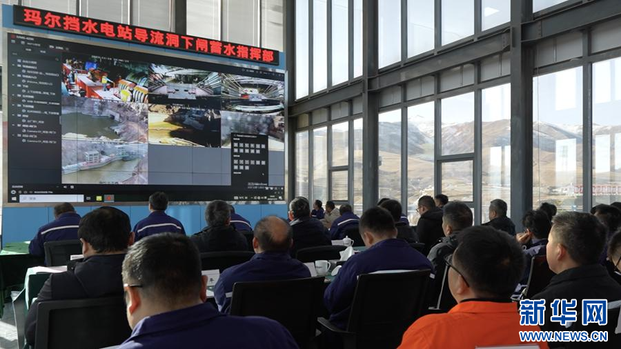 瑪爾擋水電站導流洞下閘蓄水現場。