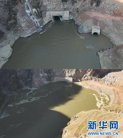 瑪爾擋水電站蓄水前後對比圖。(上圖為(wei) 蓄水前、下圖為(wei) 蓄水後)