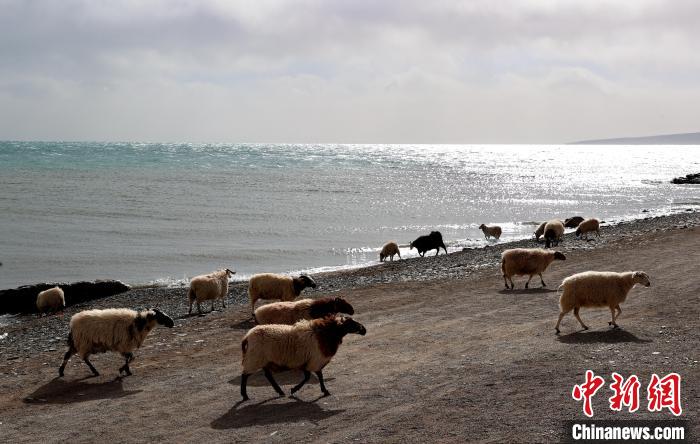 圖為(wei) 青海湖斷崖處的羊群。薛蒂 攝