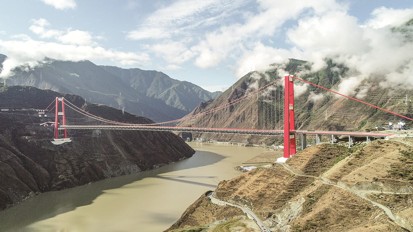 一座座雄偉的大橋飛越天塹,一項項紀錄被頻頻刷新。雅康高速瀘定大渡河大橋(興康大橋)位於瀘定縣瀘橋鎮咱裏村,主跨1100米、索塔高188米,索塔頂至水麵高差達364米,被譽為“川藏第一橋”。[詳細]
