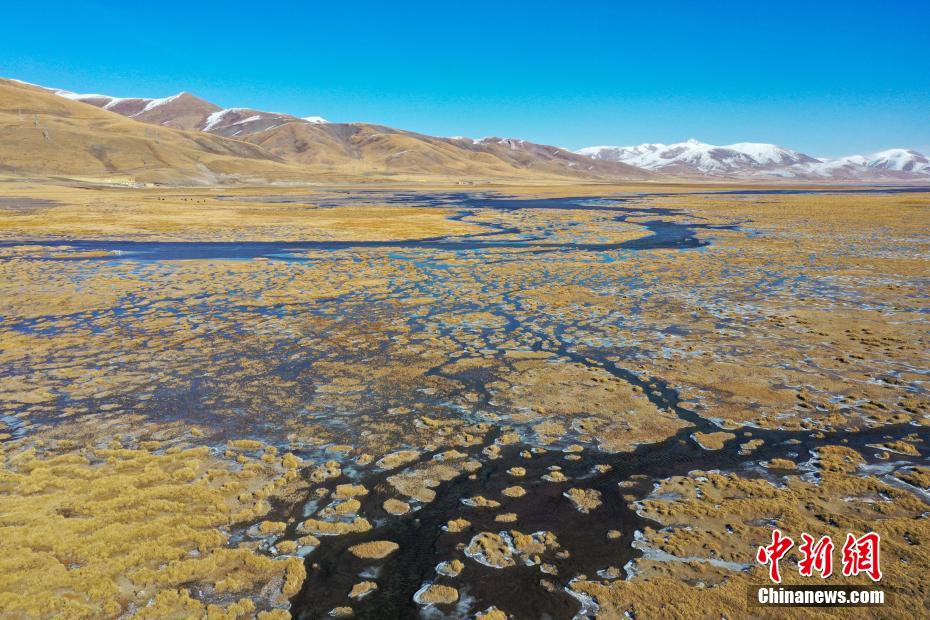 11月15日,航拍青海玉樹隆寶灘國際重要濕地冬日旖旎景色。降雪過後,位於(yu) 青海省玉樹藏族自治州玉樹市境內(nei) 的隆寶灘國際重要濕地連綿的山巒被白雪覆蓋,與(yu) 金色的草地和蜿蜒的河流交相輝映,景色旖旎。