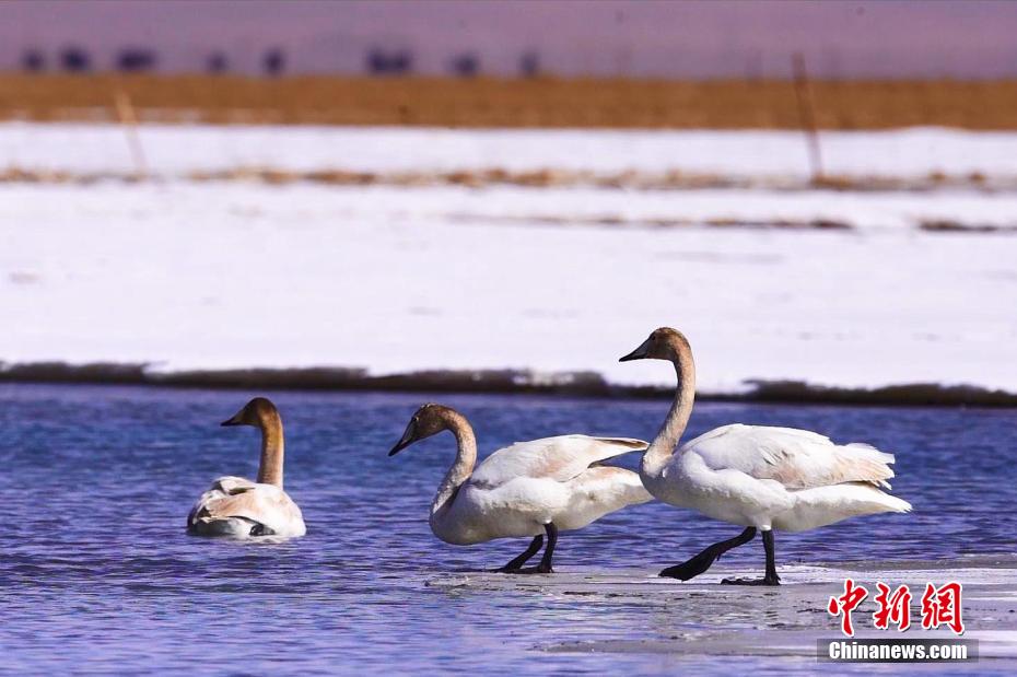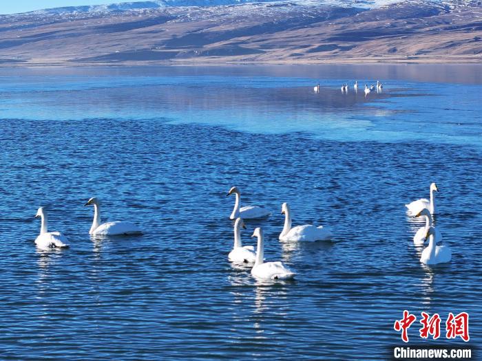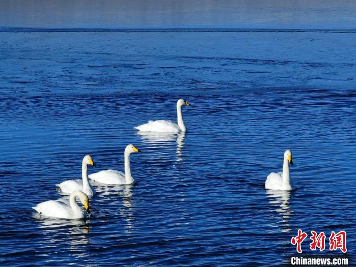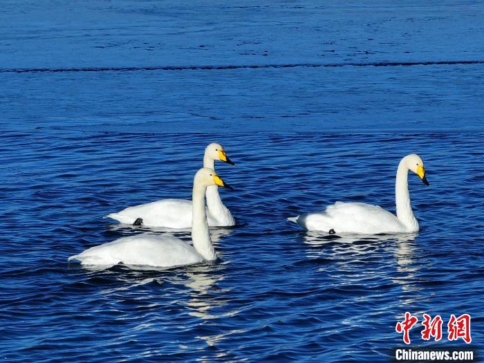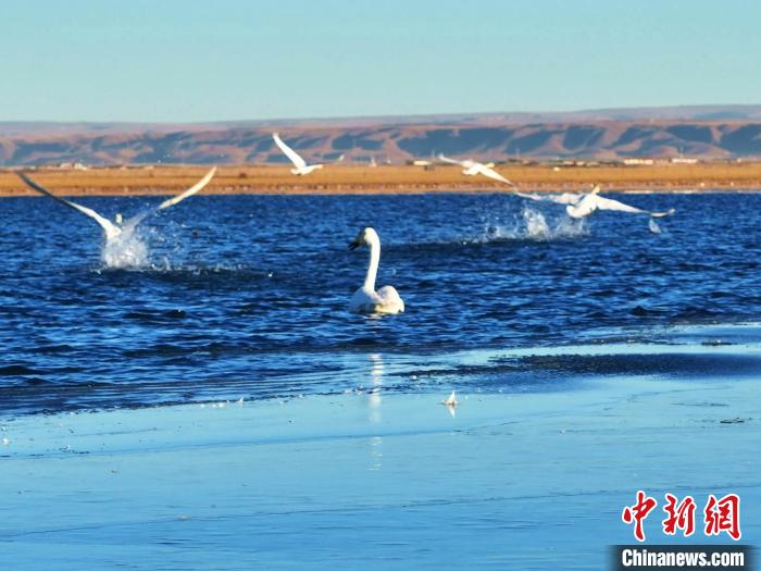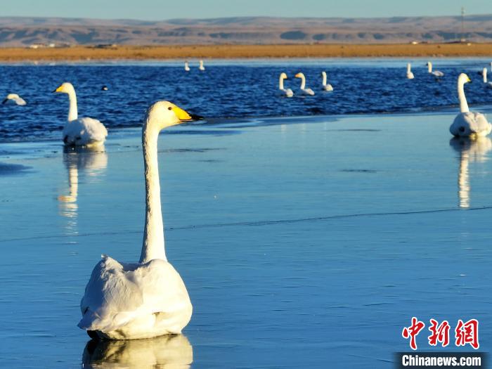 青海越冬大天鵝樂享“天下黃河貴德清”