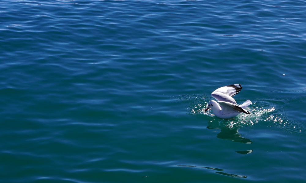 冬日的青海湖,一碧千裏沒有雜色。湖麵像一層薄薄的透明玻璃,晶瑩剔透,湖岸周圍是金黃的草場,遠處是高聳入雲的雪峰,潔白的天鵝恰似水中仙子,伸展雙翼,引翅拍水,蕩漾著水波,構成一幅冬日美景圖。[詳細] -
