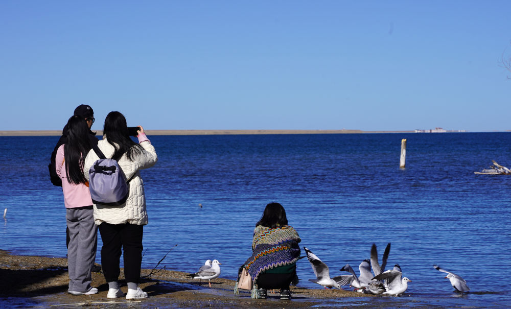 11月23日,遊客在青海湖遊玩。新華社記者 耿輝凰 攝