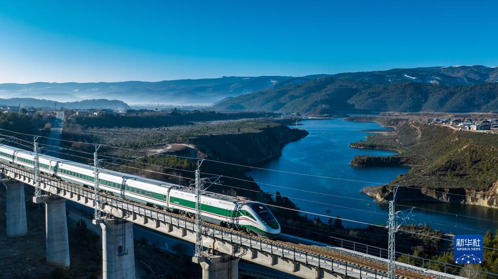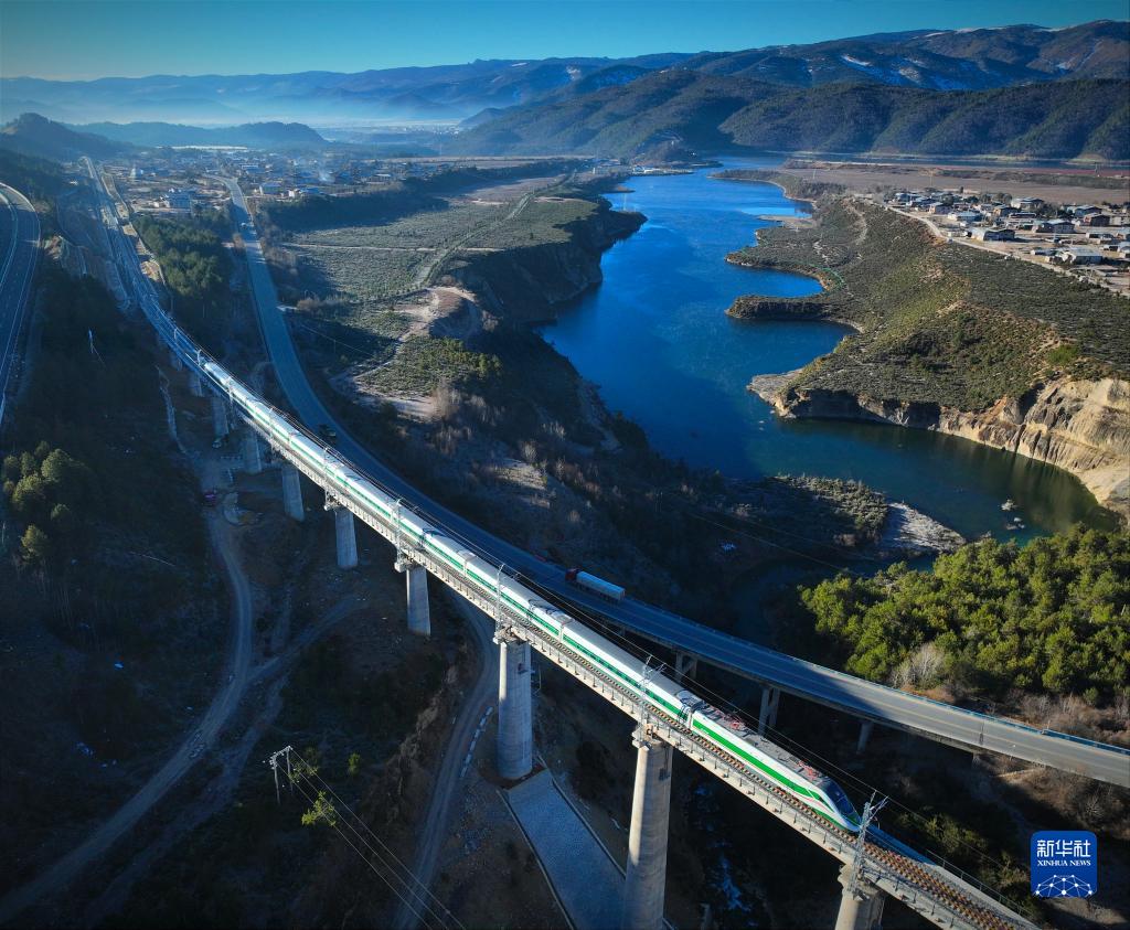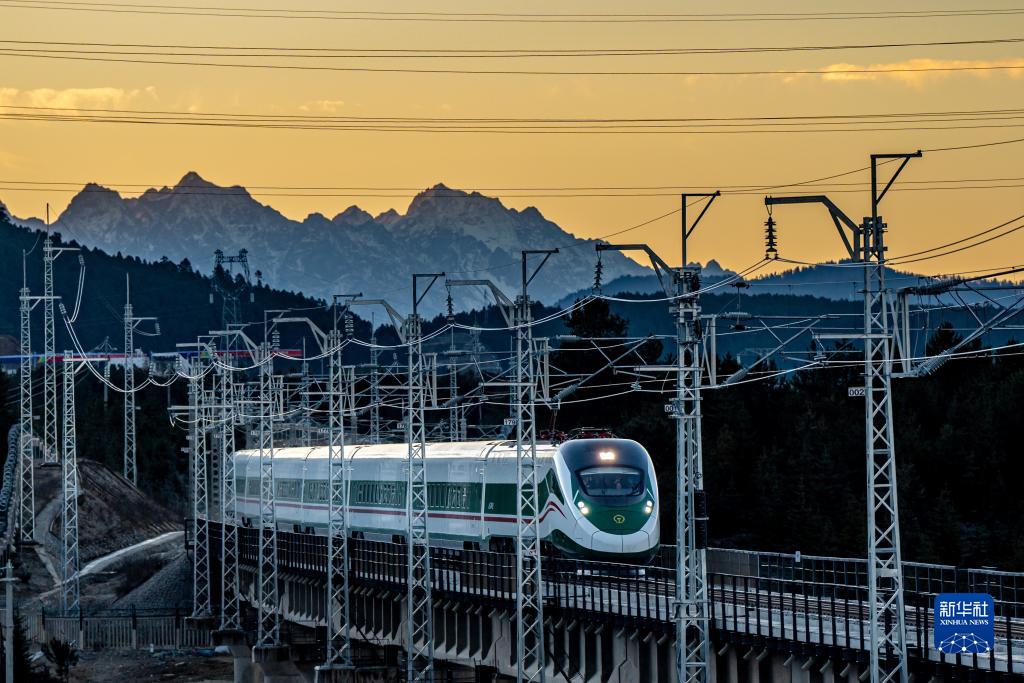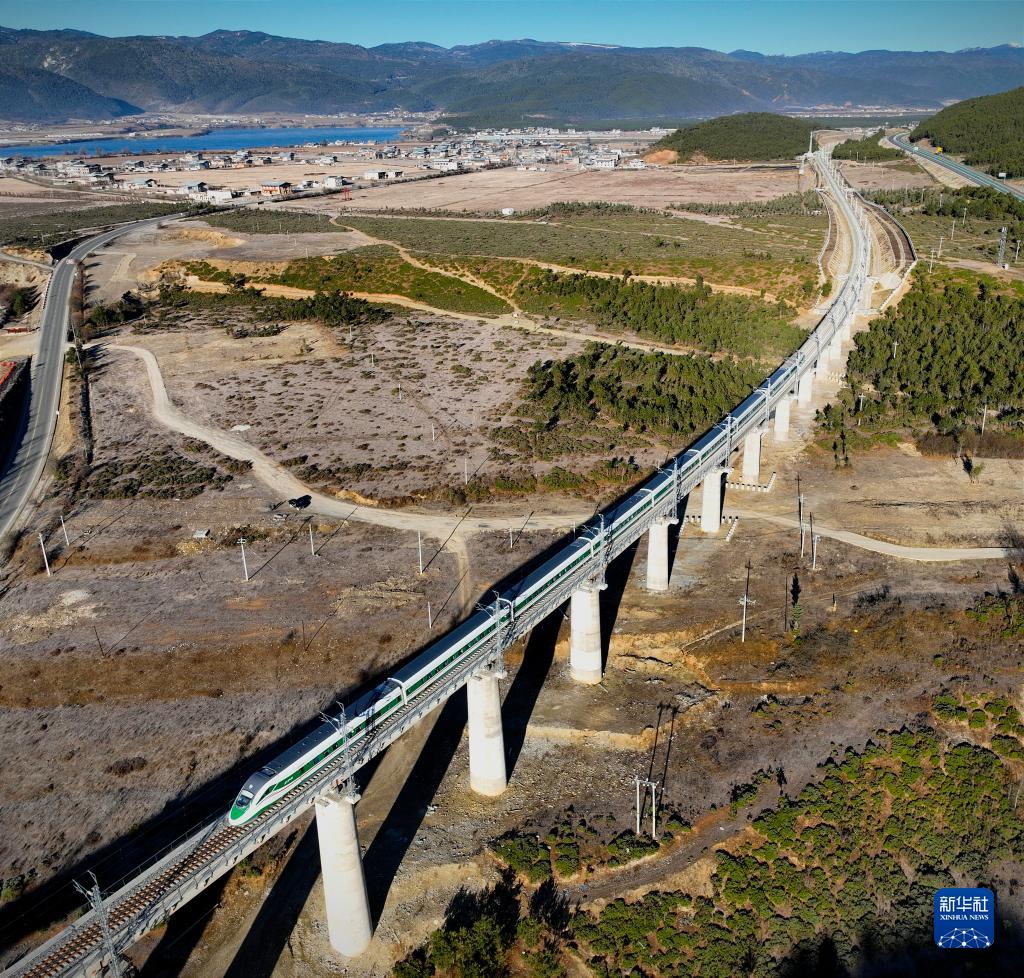 11月26日,列車行駛在麗(li) 香鐵路線上。新華社記者 胡超 攝