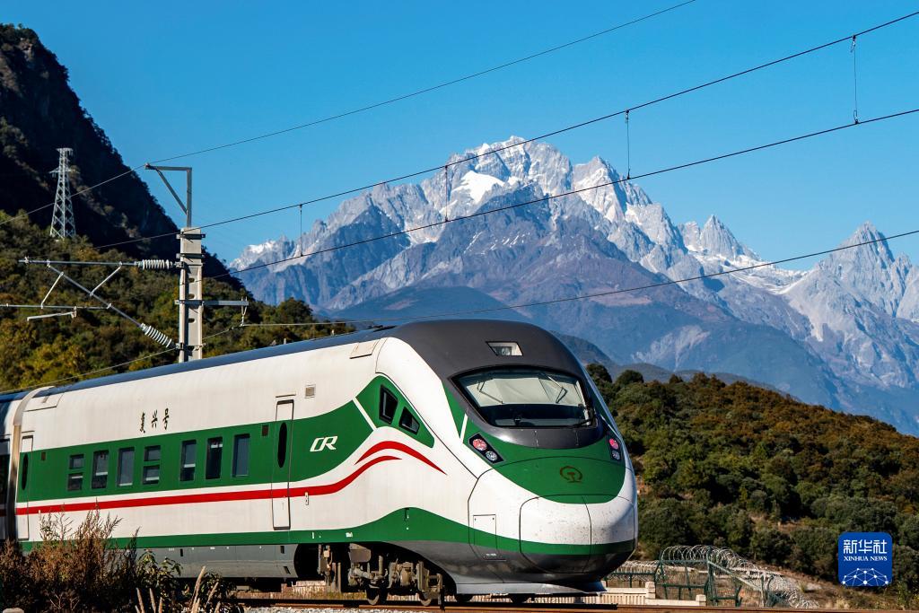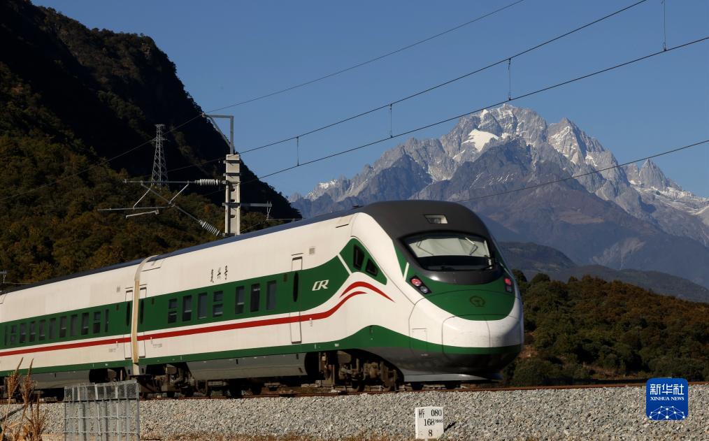 11月26日,列車從(cong) 玉龍雪山腳下駛過。新華社記者 胡超 攝