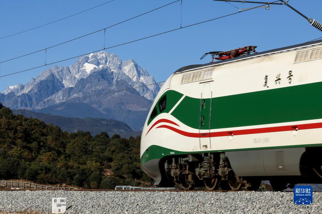 11月26日,列車從(cong) 玉龍雪山腳下駛過。新華社記者 邢廣利 攝