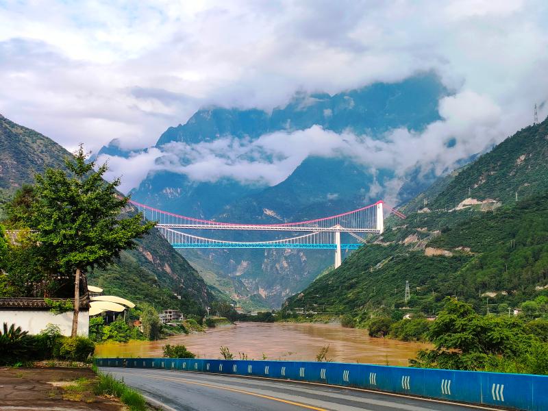 麗(li) 香鐵路、香麗(li) 高速、國道214虎跳峽段“三路“同框 (李競若 攝)