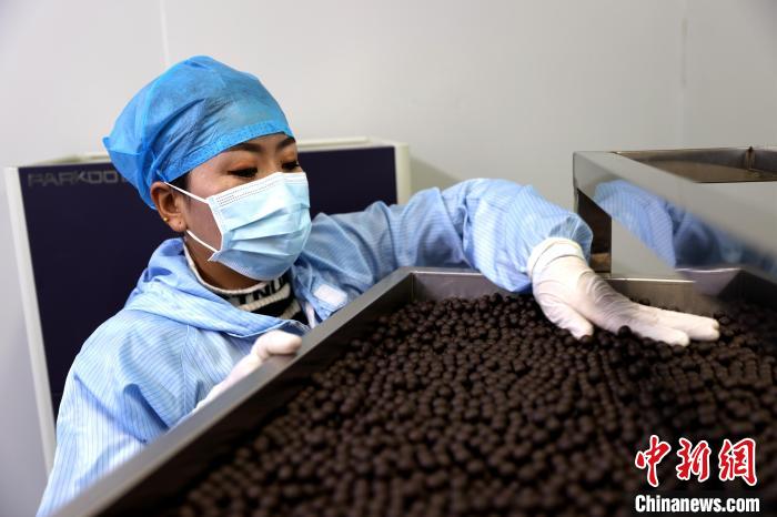 圖為(wei) 藏藥製劑室工作人員晾曬藥丸。薛蒂 攝