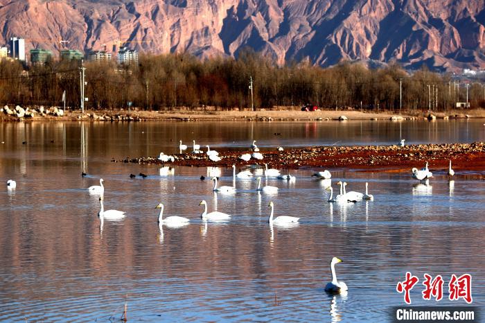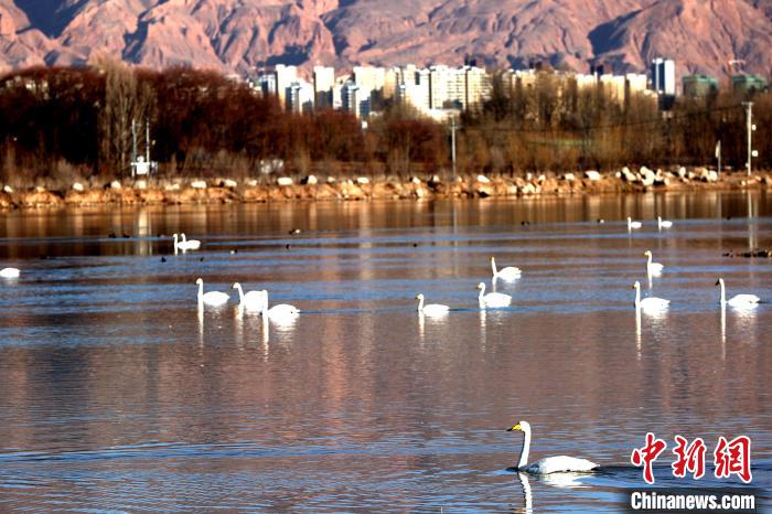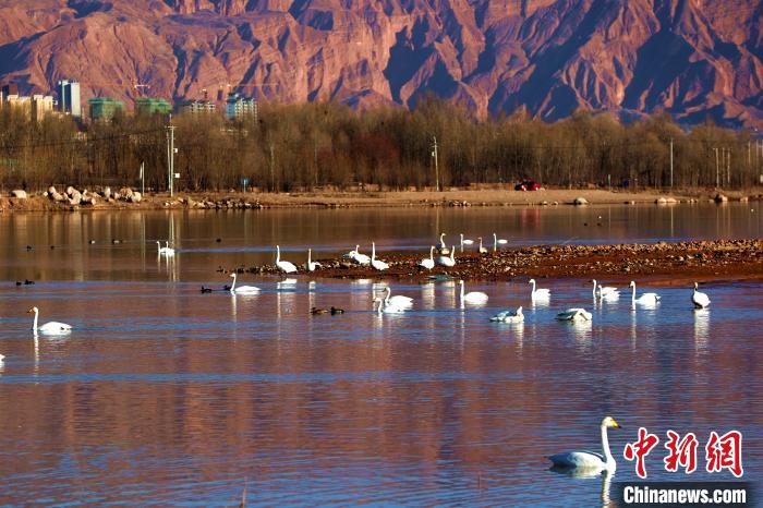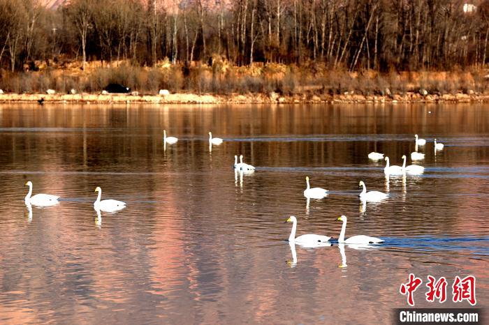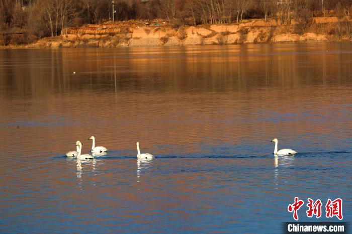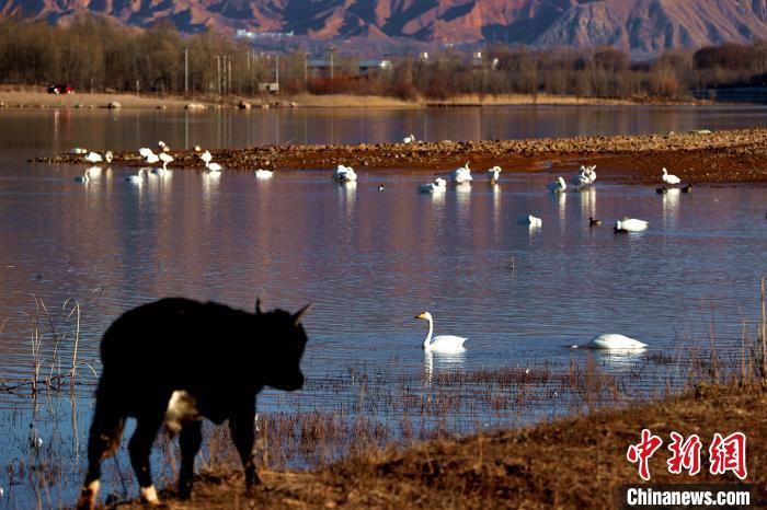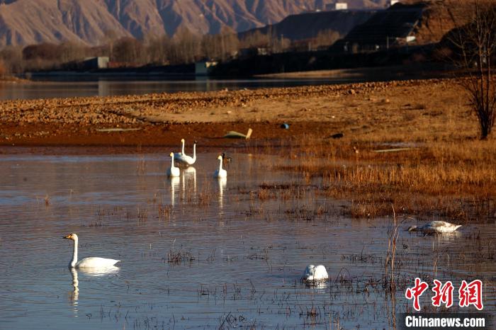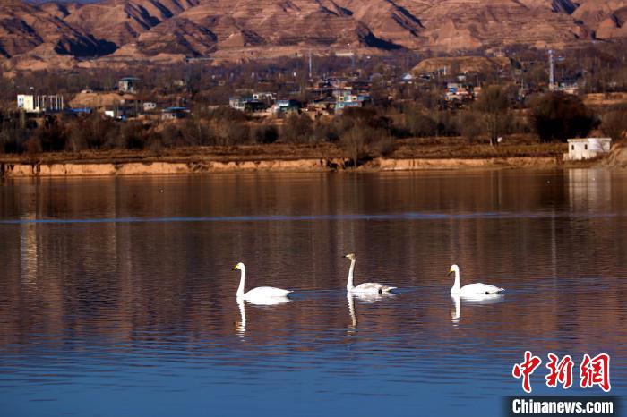 青海越冬大天鵝樂享“天下黃河貴德清”