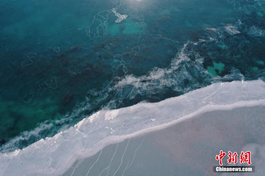 雪落青海湖金沙灣:明暗交錯若大自然的“咖啡拉花”