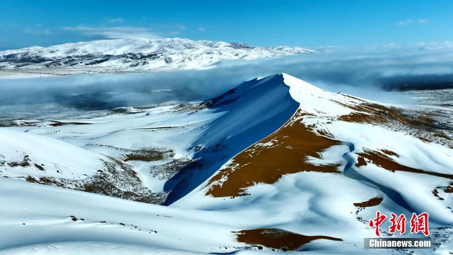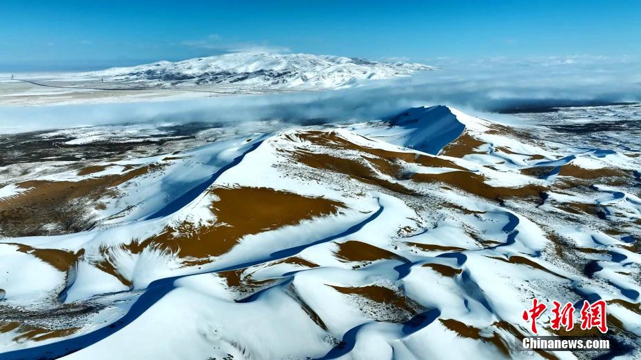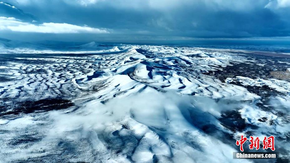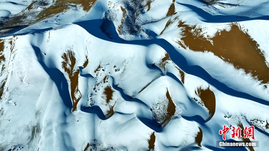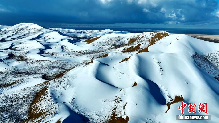 12月中旬,高原青海迎來新一輪寒潮。在青海湖北岸的青海省海北藏族自治州海晏縣,攝影師在金沙灣拍攝到雪落金沙的冬日景色。航拍鏡頭下沙與(yu) 雪的色彩明暗交錯、波瀾起伏,宛如大自然為(wei) 大地“咖啡”“拉花”,藍白交織的純淨讓人心曠神怡。雪後初晴,雲(yun) 河在沙丘間流動,時而隨著氣流“流入”青海湖,沙丘背後的蔚藍湖水,也讓景色變得奇幻優(you) 美。青海湖是中國最大的內(nei) 陸高原鹹水湖,是維係青藏高原東(dong) 北部生態安全的重要水體(ti) ,也是控製西部荒漠化向東(dong) 蔓延的天然屏障。
