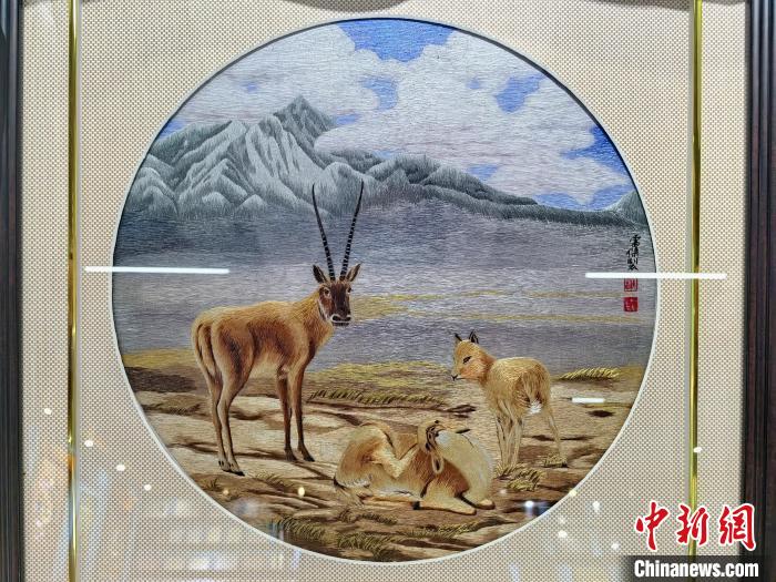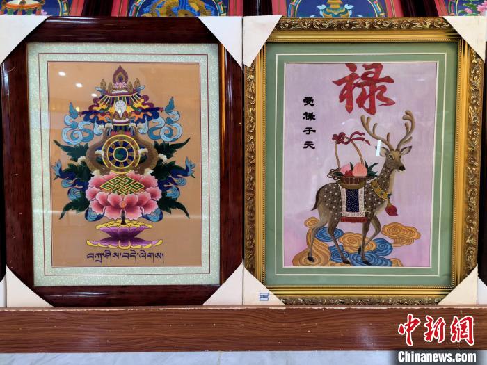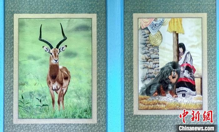 圖為(wei) 藏繡研發中心展廳內(nei) 陳列的藏繡作品。祁增蓓 攝