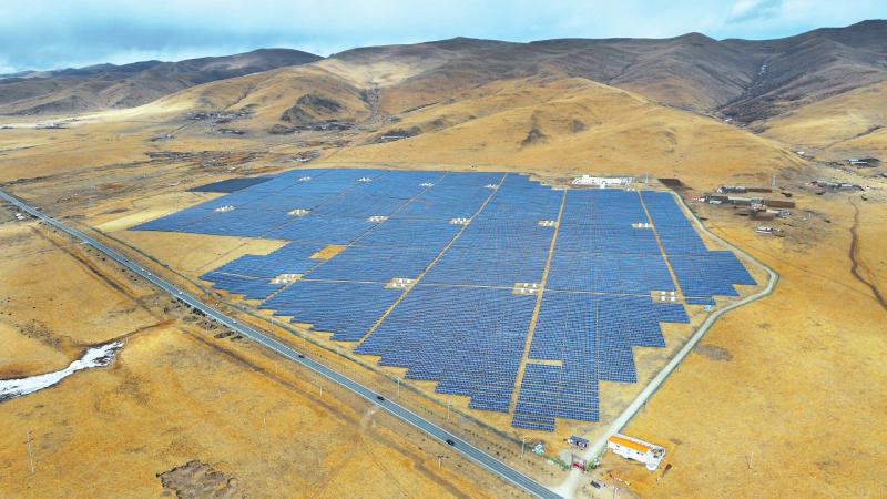 12月22日,四川省阿壩藏族羌族自治州阿壩縣蘭(lan) 措瑪光伏電站,一片片光伏板在陽光照射下源源不斷地送出清潔電力。蘭(lan) 措瑪光伏電站是阿壩縣首個(ge) 大型光伏電站,除了發揮發電作用外,光伏板的下方還種植了牧草,實現經濟效益、社會(hui) 效益和生態效益的多重豐(feng) 收。