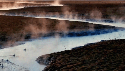 “三九”時節,在青海湖泉灣濕地,霧靄沿著河道蒸騰而起,猶如一幅天然的水墨畫卷,又似童話仙境般美妙。