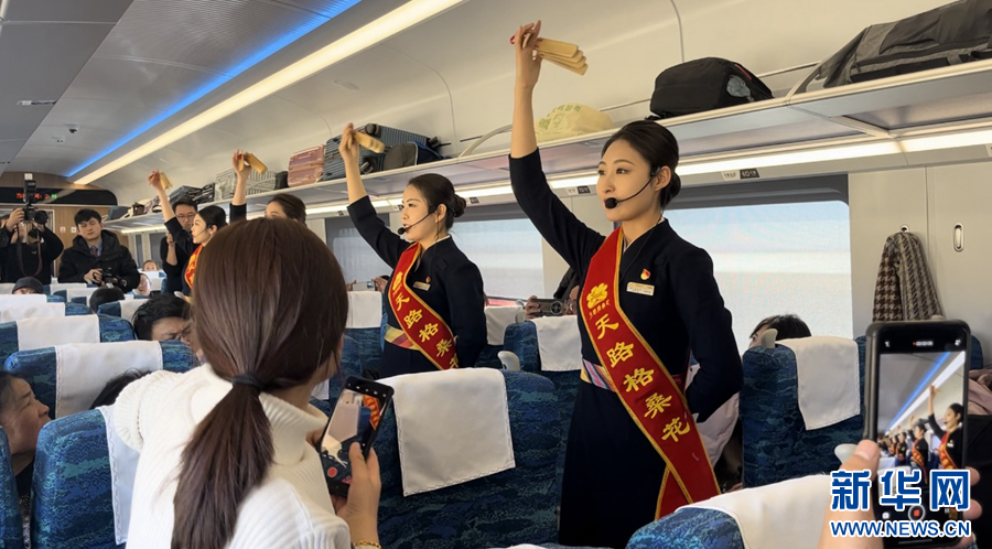 乘務長表示:“列車守護著天路的雲(yun) 與(yu) 月,也承載著無數人的情感與(yu) 記憶。我們(men) 希望通過這樣的活動,給旅客帶來溫暖和歡笑,讓他們(men) 在歸鄉(xiang) 路上感受到家的溫馨。”