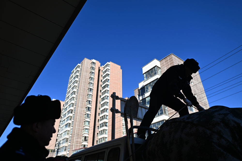在青海省海西蒙古族藏族自治州格爾木市,可可西裏森林公安局兩(liang) 名巡山隊員正在裝車(1月18日攝)。新華社記者 張宏祥 攝