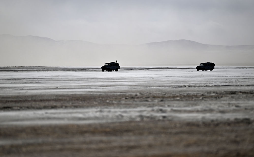 可可西裏森林公安局巡山車輛在可可西裏卓乃湖區域附近巡查途中(1月19日攝)。新華社記者 張宏祥 攝