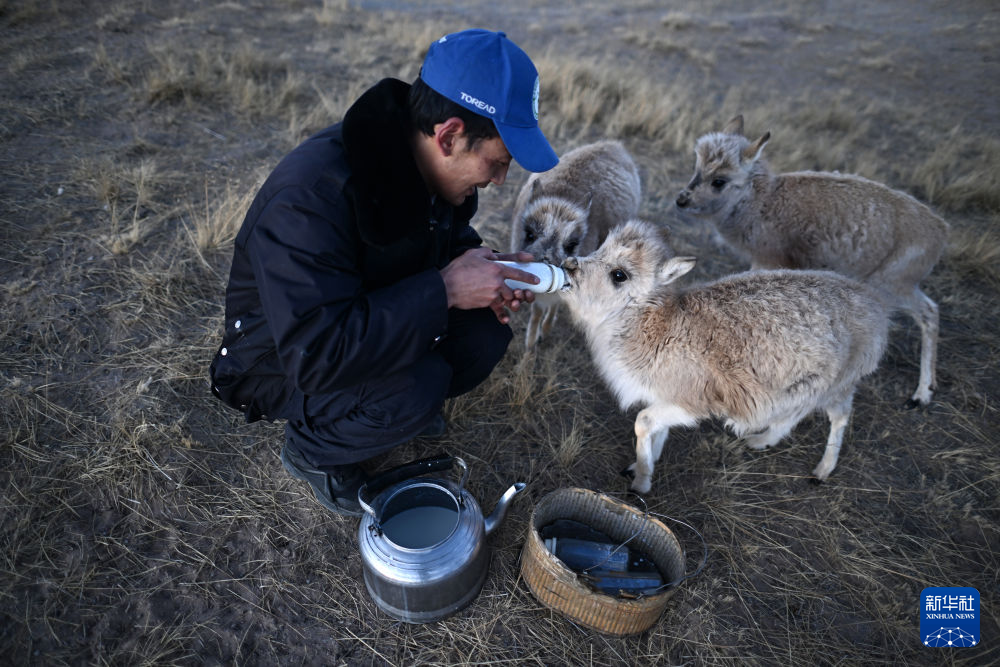 “這三隻小家夥(huo) 都是去年藏羚羊遷徙產(chan) 仔時,我們(men) 從(cong) ‘藏羚羊大產(chan) 房’卓乃湖救助回來的,現在它們(men) 已經快半歲了,你看它們(men) 吃得多香。”才文多傑一邊將“流著汗珠”的奶瓶喂給小羊,一邊觀察著小藏羚羊的身體(ti) 狀況。