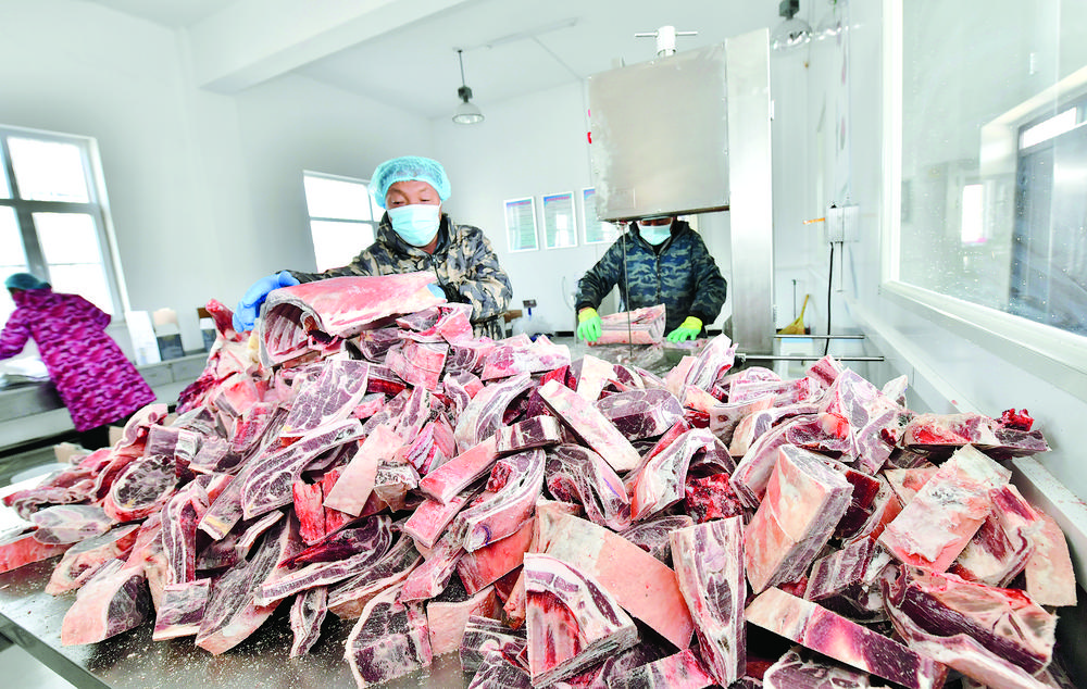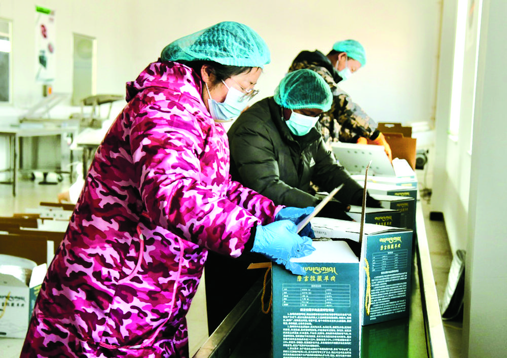 1月24日,記者走進青海省海西蒙古族藏族自治州格爾木市唐古拉山鎮長江源村的唐古拉犛牛、藏羊精深加工基地,車間內(nei) 屠宰、冷凍、包裝等功能區劃分明確,一應俱全。忙碌的生產(chan) 線上,身穿食品加工工作服的工作人員正沿著流水線緊張有序地工作。剔骨、粗分完成後,工作人員再按不同部位精準分割、整齊打包,等待銷售發貨,全力保障年貨產(chan) 品的市場供應。長江源村駐村第一書(shu) 記梁亮告訴記者:“臨(lin) 近春節,牛羊肉禮盒備受青睞,浙江、江蘇、西藏等地的訂單也比平時增加了很多。牛羊肉產(chan) 業(ye) 鏈的延伸,成為(wei) 了我們(men) 長江源村鄉(xiang) 村振興(xing) 的又一把‘金鑰匙’。”