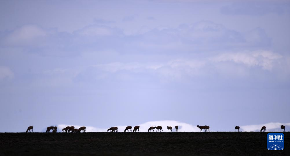 2023年7月27日,一群藏羚羊在可可西裏境內(nei) 活動。新華社記者 張宏祥 攝