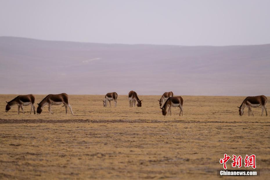 2月20日,青藏公路西藏安多縣境內(nei) 的藏野驢群。江飛波 攝