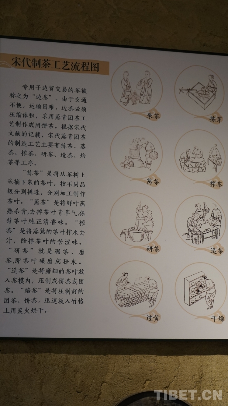 推開茶馬司的大門,出現在眼前的“茶馬司”石碑用漢藏兩(liang) 種文字記錄著茶馬司的興(xing) 衰曆史。“宋時因連年用兵,所需戰馬,多用茶換取。神宗熙寧七年,派李杞入川,籌辦茶馬政事,於(yu) 名山,以名山茶易馬用……明洪武時,對茶葉實行官買(mai) 官銷,由茶馬司主持交易……”