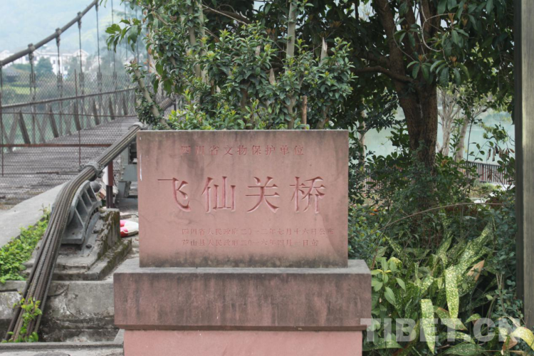 站在橋邊,遙望蜿蜒的江水就是青衣江,飛仙關(guan) 橋全長164米,寬4.5米,索塔為(wei) 鋼筋混凝土門式框架,高29米,流動式索鞍,策略式索錠,當時的設計載重為(wei) 15噸。橋柱橫額上有時任西南軍(jun) 政委員會(hui) 主席劉伯承所題寫(xie) 的橋名——“飛仙關(guan) 橋”。橋西岸塔柱有時任十八軍(jun) 政委譚冠三題寫(xie) 的檻聯——“發揮天才,發揮力量,戰勝困難,創造人民幸福,一麵進軍(jun) ,一麵建設解放西藏,鞏固西南國防”的字樣。東(dong) 岸塔柱上有時任西康省主席廖誌高題寫(xie) 的檻聯——“勞動創造世界飛仙天險何難克服,革命帶來幸福閉塞邊區從(cong) 此繁榮”字樣。橋上五顆閃閃的紅星,映照著飛仙關(guan) 的繁榮,也印證著革命前輩們(men) 的美好願景已經變為(wei) 現實。