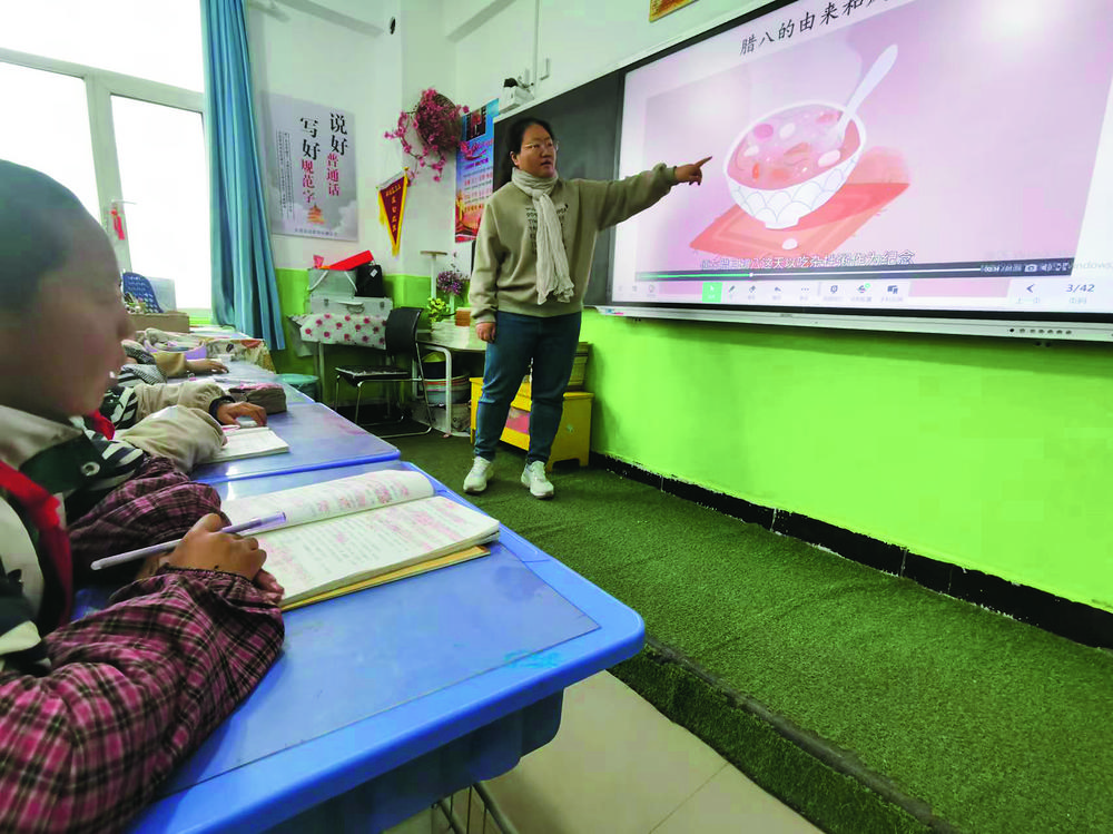 老師解萌萌借助智能黑板,通過視頻給學生講授中國傳(chuan) 統節日和文化。