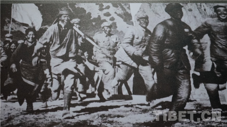 圖為(wei) 川藏公路巴河橋梁架通後的歡呼場麵老照片 翻拍:張宇