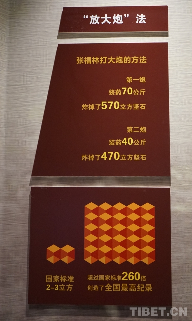 在雀兒(er) 山修路時,張福林白天與(yu) 戰友們(men) 懸在岩壁上打炮眼,晚上到工地上研究堅石、孤石、鬆石、片石等各種石頭的打眼、裝藥、放炮等技術,並積極向工程人員、技工同誌、工兵部隊學習(xi) ,最終提出了改進裝藥的方法,即“放大炮法”。“放大炮法”的爆破功效超國家標準260倍,創造了全國爆破的最高紀錄。這一方法不僅(jin) 能提高工效,還能節約炸藥,在築路部隊中得到全線推廣,張福林也被大家譽為(wei) “大炮手”。