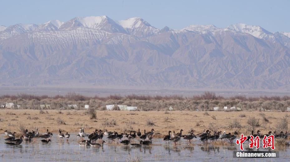 近日,隨著天氣轉暖,在青海省柴達木盆地,大批國家二級重點保護野生動物灰鶴聚集於(yu) 都蘭(lan) 縣巴隆鄉(xiang) 。此外,野生天鵝、斑頭雁、黃鴨、赤麻鴨等鳥類也聚集於(yu) 此,或展翅高飛,或覓食嬉戲,在候鳥遷徙季勾勒出一幅山水靜好、飛鳥翔集的美麗(li) 生態畫卷。