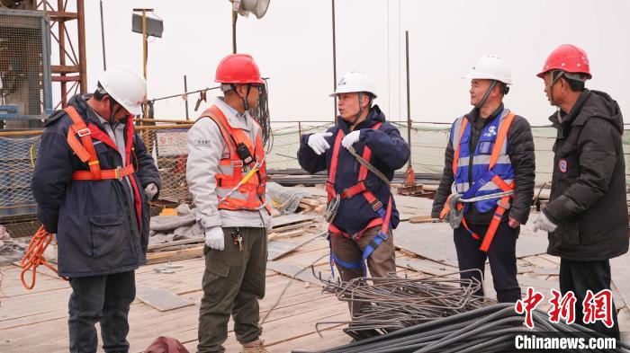 圖為(wei) 技術人員指導封頂工作。韓奎忠 攝