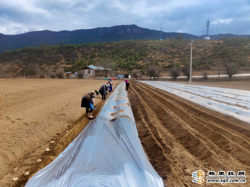香格裏拉市小中甸鎮和平村村民為(wei) 土地覆膜