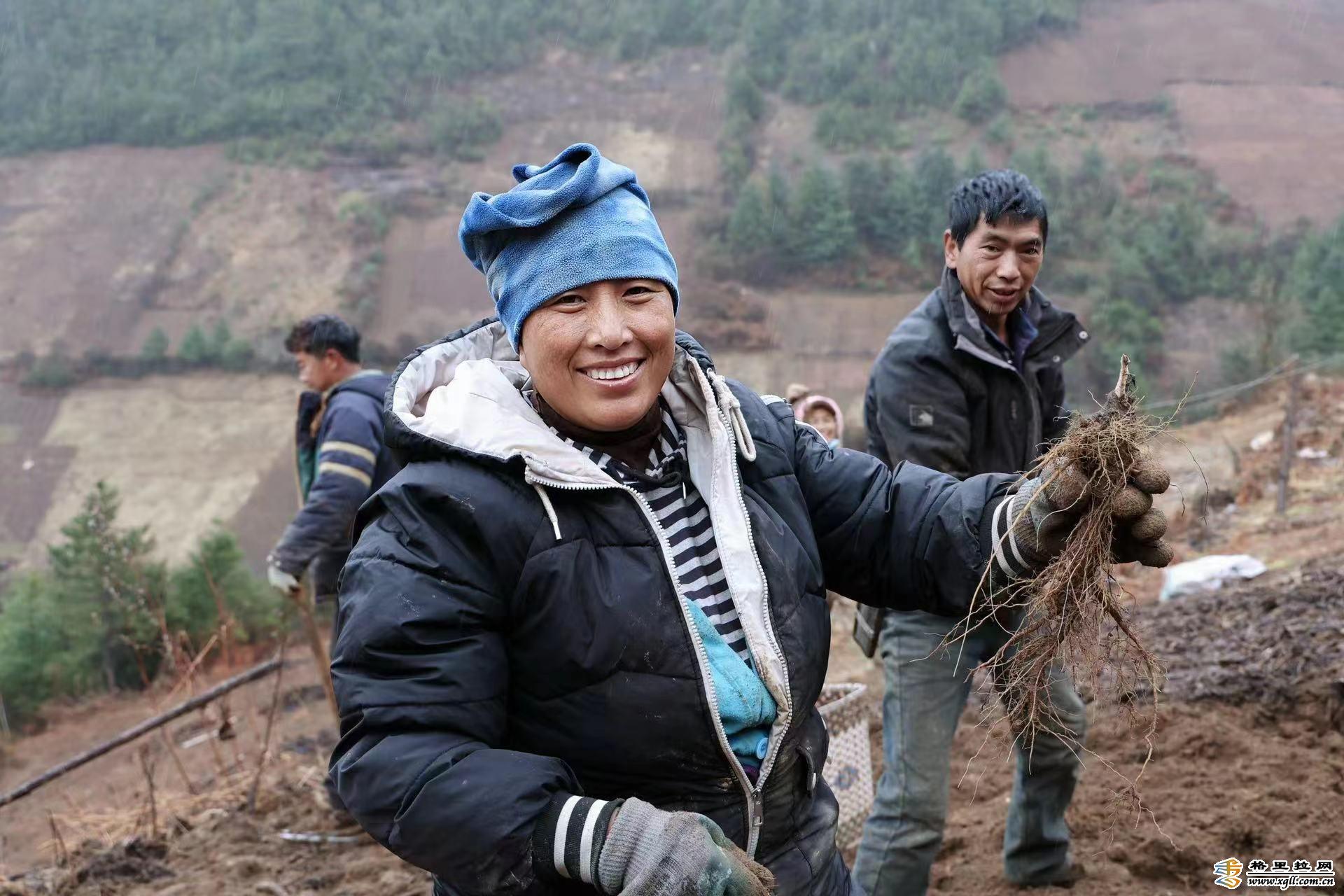 德欽縣拖頂鄉(xiang) 洛沙村中藥種植戶冒雨栽種中藥材