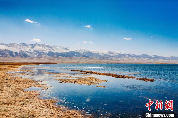圖為(wei) 消融的青海湖與(yu) 遠處雪山形成醉人畫卷。趙海梅 攝