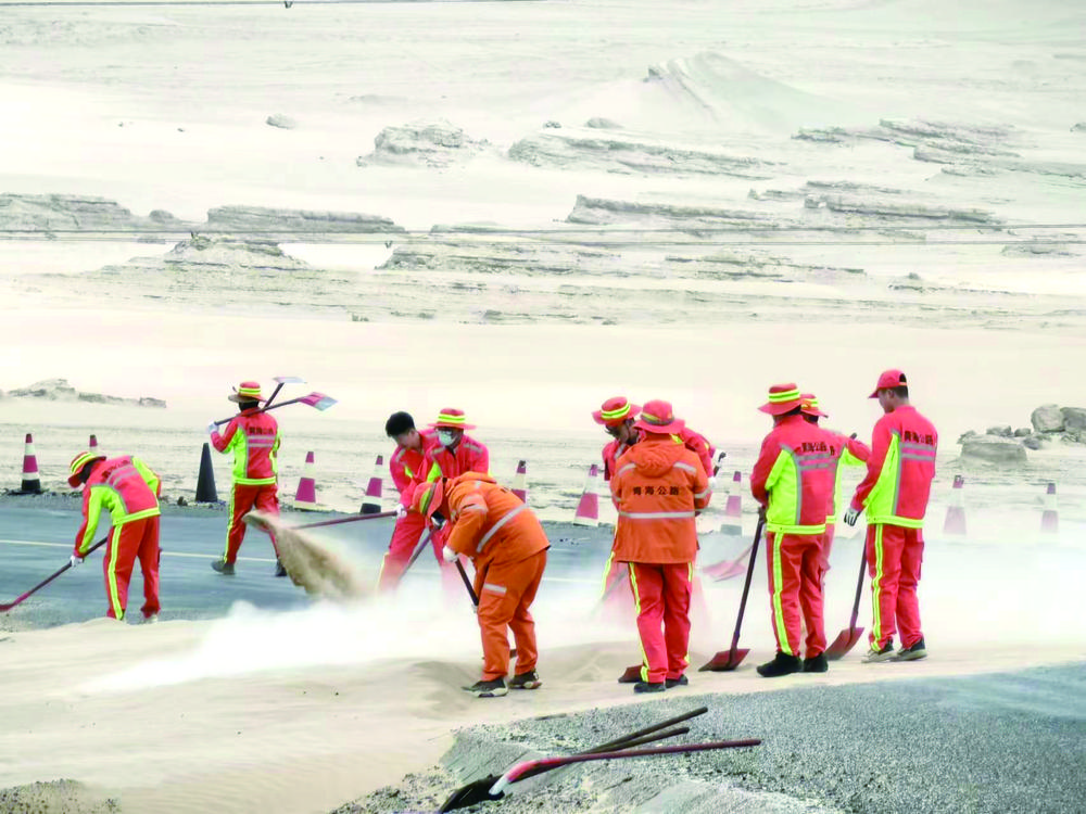 站在一望無際的戈壁灘向東(dong) 望去,寬闊筆直的315國道綿延伸向遠方。一日又一日,一年又一年,茫崖公路段老茫崖工區的一抹抹“橘紅色”,用他們(men) 的雙腳丈量天路,用行動踐行永遠不變的初心誓言。