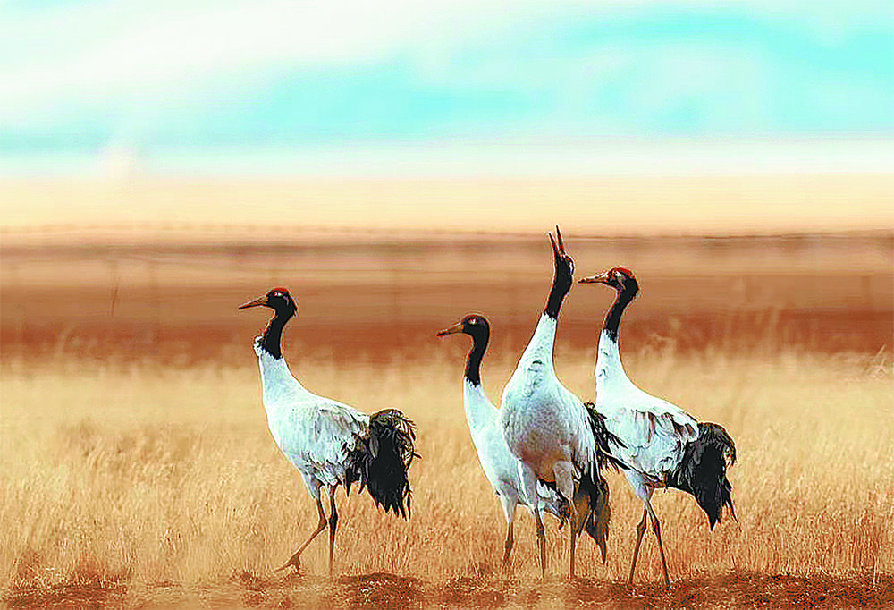 隆寶國家級自然保護區的黑頸鶴。資料圖片