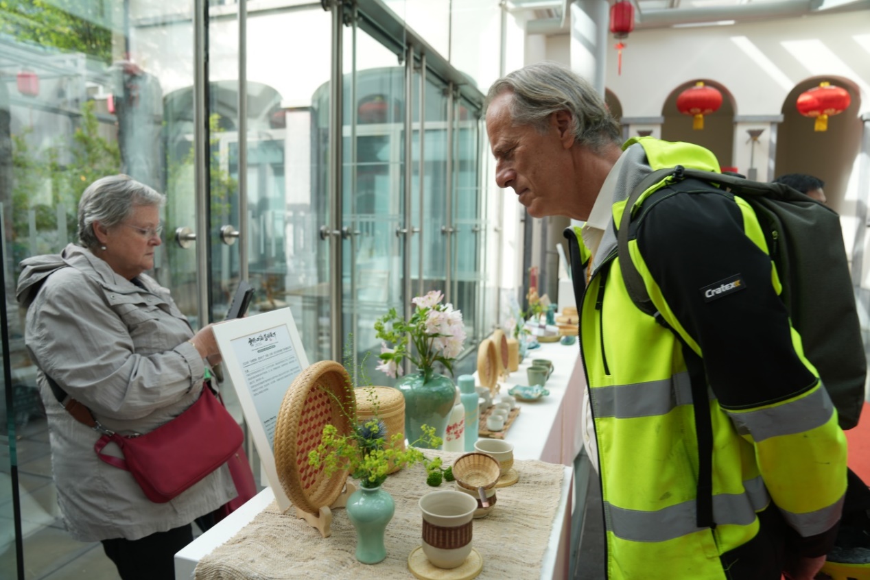 和傳(chuan) 拓技藝一起亮相歐洲的還有經緯交錯的指尖藝術——宜良竹編、色如翡翠的高原綠陶——雲(yun) 南華寧陶等。宜良竹編特有的立體(ti) 梅花紋,仿若繡花般精細,讓人連連驚歎。華寧陶獨特的綠釉,似鬆煙似雲(yun) 霧,美得讓人沉醉。