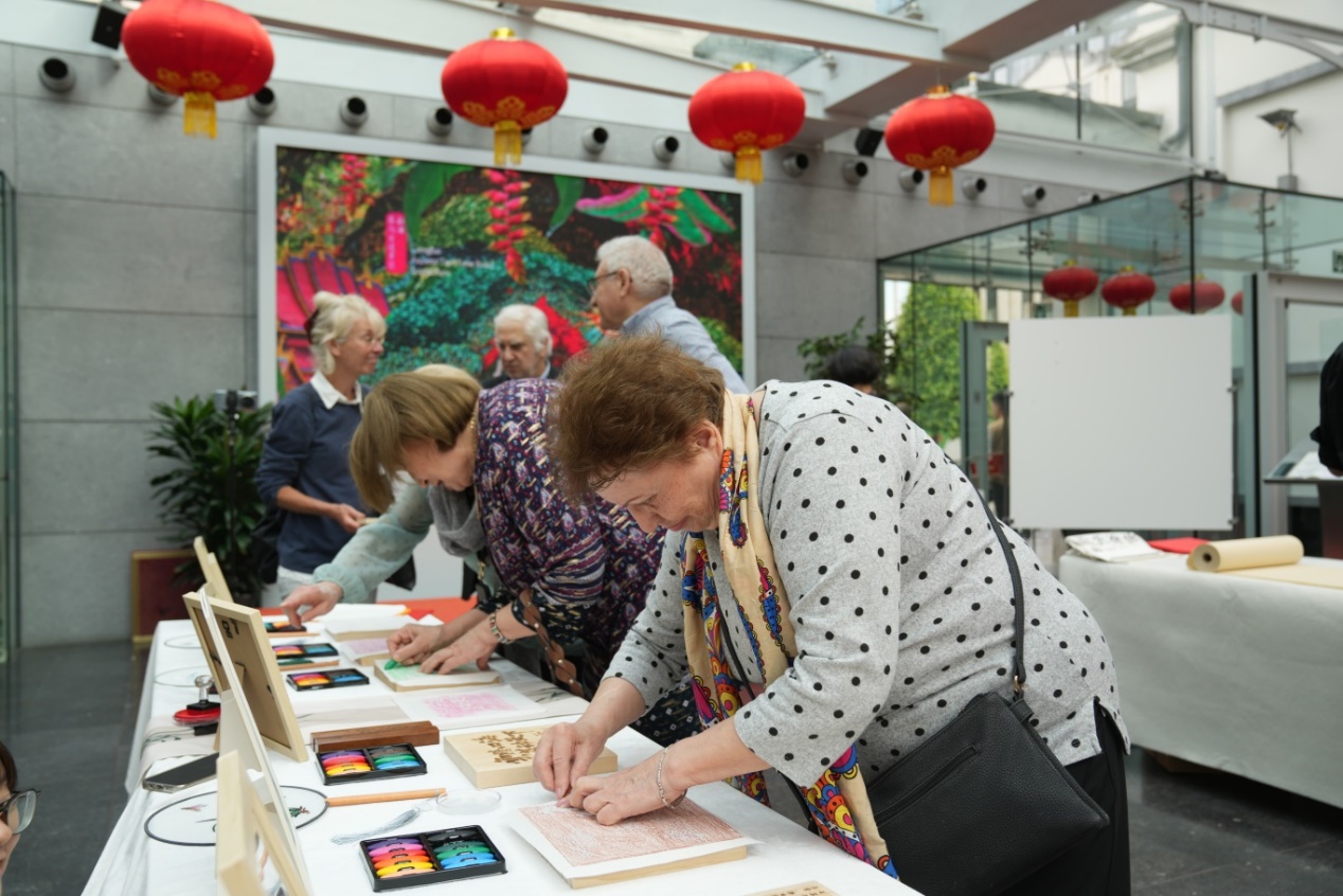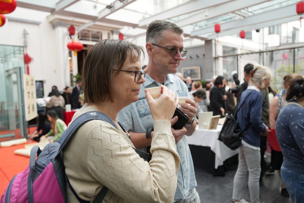 有著1800多年曆史的傳(chuan) 拓,堪稱“中國最古老的印刷術”,是一種重要的文物保護和古籍修複技術。發展至今,已從(cong) 拓金石發展為(wei) 萬(wan) 物可拓;從(cong) 拓文字、圖案發展為(wei) 全形拓。為(wei) 讓歐洲民眾(zhong) 近距離感受傳(chuan) 拓的獨特魅力,昆明市非物質文化遺產(chan) 傳(chuan) 承人張衡特別創作集立體(ti) 拓、書(shu) 法、篆刻等多種藝術形式為(wei) 一體(ti) 的“普洱茶拓”,並定製“雲(yun) 騰四海·茗動天下”“茶馬古道”等拓版供嘉賓體(ti) 驗。