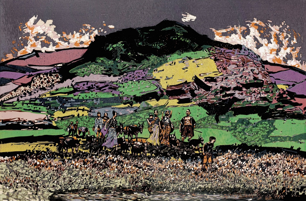 絕版木刻是一種木刻多色套印技法,它突破了傳(chuan) 統套色木刻“一色一版”的製作程序,將一幅畫所有的色版都集中在一塊版上,采用邊刻邊印逐版遞減的創作方式來完成,刻印版畫的過程也是自然毀版的過程,因而被稱為(wei) “絕版木刻”。