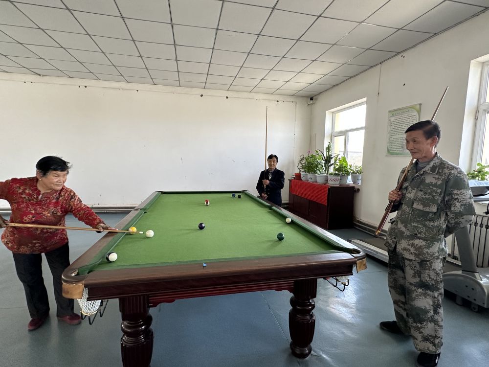 “在這兒(er) 吃住免費,飯有人做,衣服有人洗,每月還有100多元的養(yang) 老金和零花錢。”在活動室裏,王金蓮手握台球杆,熟練推杆。入住敬老院後,運動成了她的生活日常。