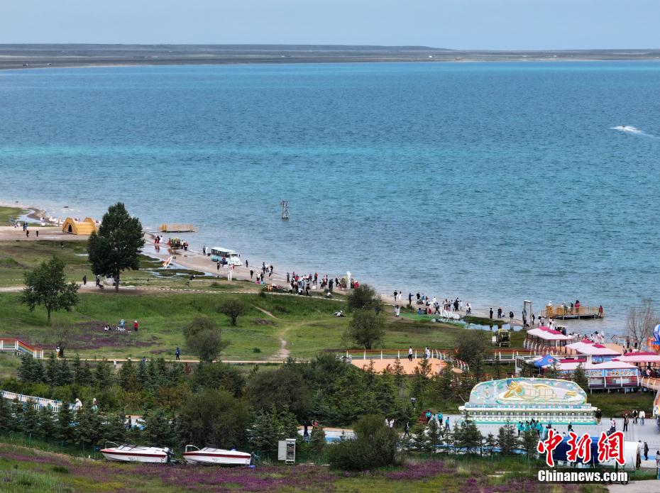 7月8日,航拍遊客在青海省海南藏族自治州共和縣青海湖二郎劍景區內(nei) 觀光。(無人機照片)中新社記者 馬銘言 攝