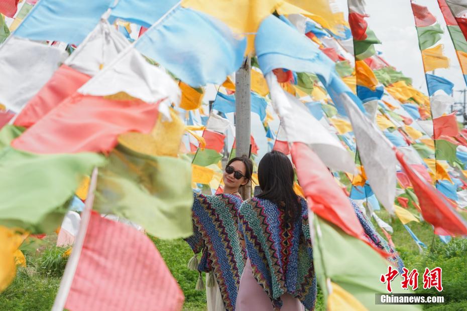 7月8日,遊客在青海省海南藏族自治州共和縣青海湖二郎劍景區內(nei) 拍照打卡。中新社記者 馬銘言 攝