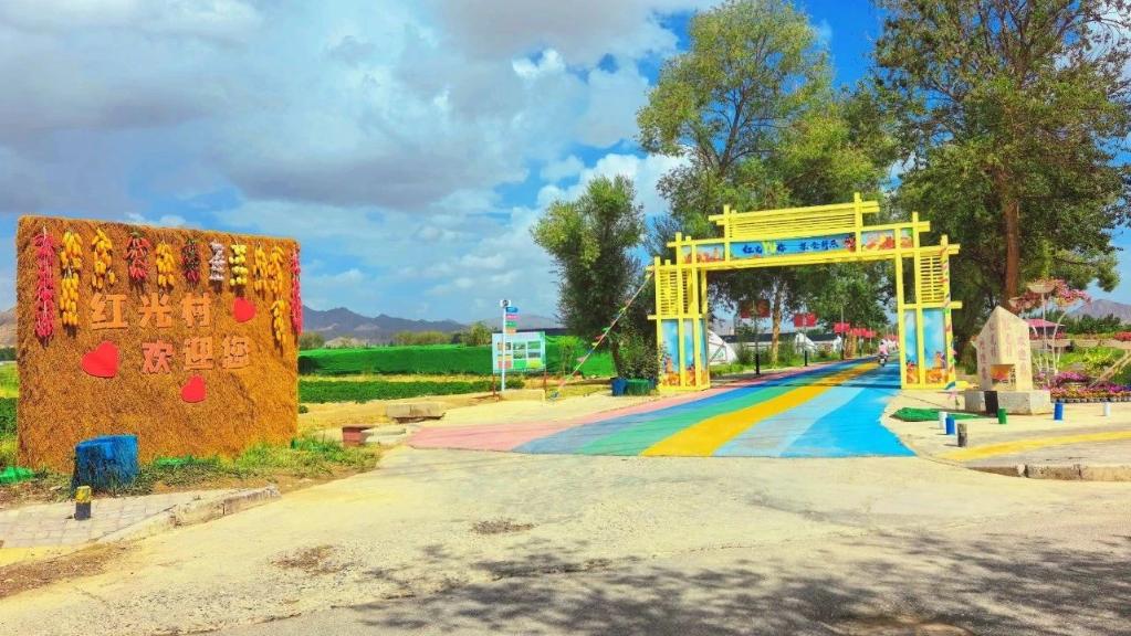一條繽紛亮眼的“彩虹步道”從(cong) 村口一直向裏延伸,“彩虹步道”兩(liang) 旁種滿了瓜果蔬菜,不遠處還有采摘體(ti) 驗園和燒烤露營地,在青海省海西蒙古族藏族自治州德令哈市郊的紅光村,別樣的田園風情給烈日炎炎下的德令哈增加了一絲(si) 清爽。