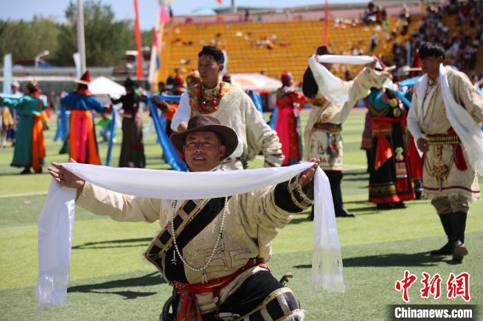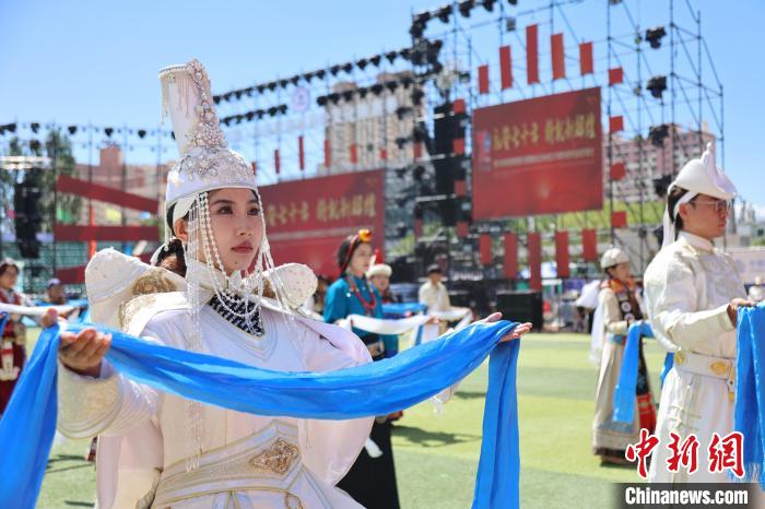 7月15日,“禮讚七十年 鑄就新輝煌”格爾木慶祝海西蒙古族藏族自治州成立70周年係列活動,在青海省海西州格爾木市拉開帷幕。格爾木市享有“中國鹽湖城”美譽,是20世紀50年代因青藏公路修建和柴達木盆地資源開發而迅速崛起的一座新興(xing) 工業(ye) 城市,擁有漢族、蒙古族、藏族等35個(ge) 民族。當日開幕式上,舉(ju) 行了大型廣場文藝演出,當地各族民眾(zhong) 身穿節日盛裝,展現高原城市的生機和活力。