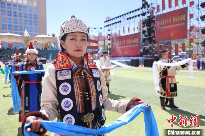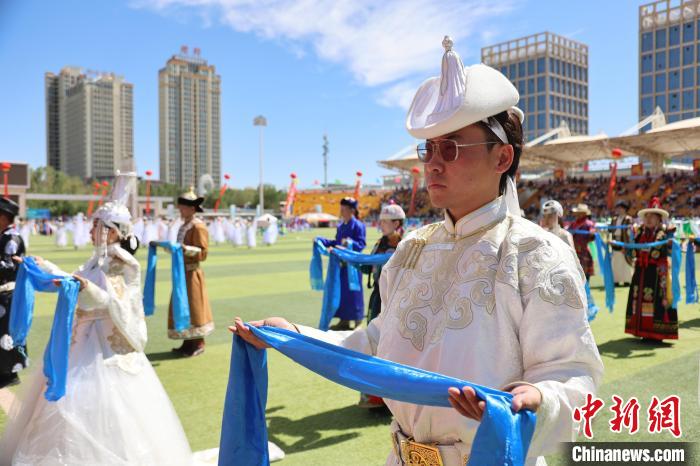 圖為(wei) 民眾(zhong) 展示蒙古族服飾。中新社記者 張添福 攝