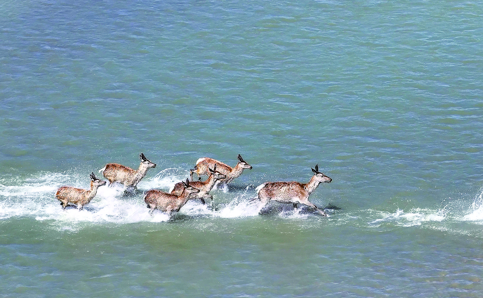 盛夏的清晨,從(cong) 海西蒙古族藏族自治州天峻縣出發,沿布哈河逆流而上,行進的方向,正是青海湖湟魚(裸鯉)洄遊的方向。從(cong) 高處俯瞰,布哈河的一條條分岔猶如人體(ti) 血管,肆意流淌,但最終又歸為(wei) 一處,河道兩(liang) 旁甚至河道內(nei) 的淺灘,密密麻麻分布著灌木林,林木簌、簌、簌……響動著,隻見馬鹿林中穿梭。