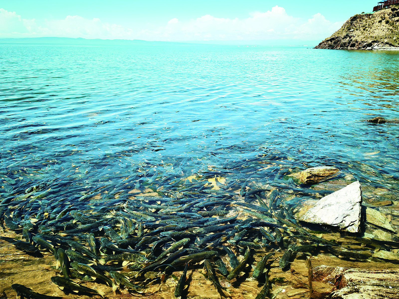 聖泉灣生態體(ti) 驗區湖邊遨遊的青海湖裸鯉。
